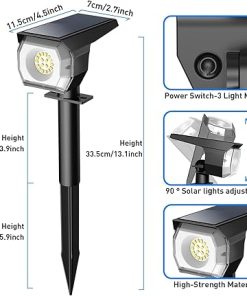 - SIMPLICITY & FLEXIBILITY: The solar spot lights outdoor is easy to install. Installation parts are provided with the delivery, you can easily insert it into the ground as a spot lights, or fix it on the wall as a wall light, 2-in-1 function elects as you like
