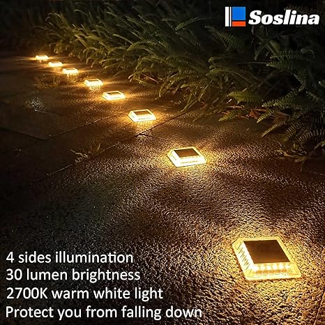 - 【Bright LED Beads 】With 2700K warm white LEDs, the square solar step lights outdoor distribute pretty 360° high illumination with even light, nice ring of warm white light in a bright output of 30 lumen. It not only has atmosphere lighting, but also plays an auxiliary lighting role.