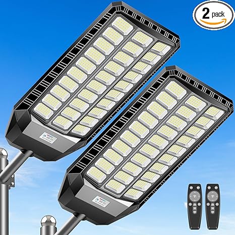 - Extremely Bright Solar Lights: Solar street lights outdoor use 1680 high-efficiency 5730 SMD lamp beads and with a long lifespan and low light decay, 480000 lumens and a color temperature of 6500K for extreme brightness. Its lighting range reach up to 5200 square feet.The die-cast aluminum frame ensures durability and requires no maintenance for long-term use, while each component undergoes aging and repeated testing for high quality.