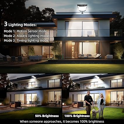 - [The Ultimate Outdoor Lighting Solution] Unlike traditional streetlights, our solar outdoor lights not only save on electricity costs but also simplify installation. They automatically activate at dusk, with the motion sensing mode providing added home security after dark.