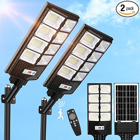 Solar Street Lights 2 Pack Waterproof 10000LM with Motion Sensor