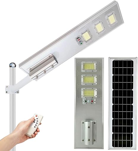 - đź’ˇHigh Brightness & Energy Saving: The solar powered street light heavy duty has built-in high-brightness and long-life SMD lamp beads, which can provide 100,000 lumens of brightness and lighting range up to 2200 square feet, suitable for lighting in large places such as sport, gardens, terraces, garages, parking lots, stadiums,patio, pathway, path pool, etc.