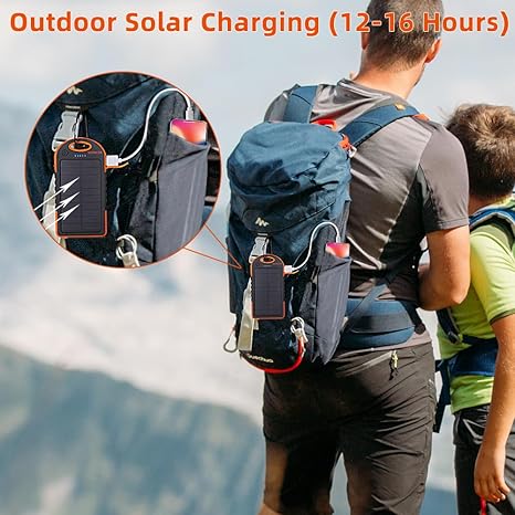 - Its Power Bank with 2 Recharging Options: The ecological-design power bank has 5000mAh capacity battery with a solar panel. The solar charge time is 12-16 hours depending on the sunny or cloudy outdoor condition while the quick indoor USB charge time is 4 hours, providing the uninterrupted lighting for at least 10 hours on a single charge. It’s compact, waterproof, lightweight, and with 2 USB ports, which makes it easy to bring with you. Super convenient for travel and backpacking.