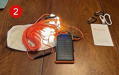 These are pretty heavy duty for what they are for….camping, hiking, tents and all sorts of emergency lighting. You can use them in the house for power outages and places you need some light that are damp or wetter. They use a power bank battery that is either charged by the sun, solar, or a usb cord can be used to charge the battery bank. The bulbs themselves are a thick, milky plastic that does show a good deal of light and the inline power buttons control the on/off and modes of the lights. I can see these lights being a really needed and handy source of light during power outages. Generously long string cord that is a vibrant orange and heavy-duty stranded on the outside of the wire with braided strong shiny material. I suppose you could use them as a party or tree decoration, but the orange cord is going to stand out a lot. I believe the orange cord though is a good thing for emergency purposes in all kinds of outdoor activities, since the orange will stand out to find you or you to find the cord. Great set of battery string lights for outdoor activities that is solar battery operated so if there is sun, you are in business. NICE and very, very happy!! : )