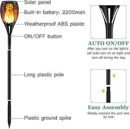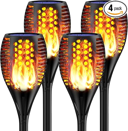 - 🔥EASY INSTALLATION: No wiring required, simply install solar flame lights anywhere you like. Application for areas such as yard, pathways, pool, garden, bench, patio, fence, deck, or outdoor events like party, camping, barbecue, wedding, Christmas, Halloween festival.