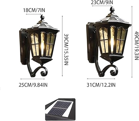 - CLASSIC DESIGN: The exterior solar wall light offers both appearance and size compared to other wall lights.Perfect choice to set up in front of your doorway, porch, patio, corridor, pathway where has enough direct sunlight.