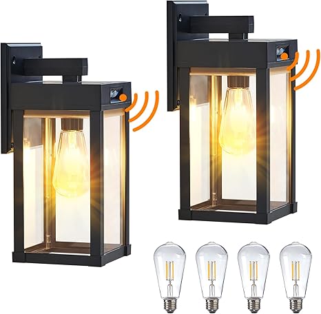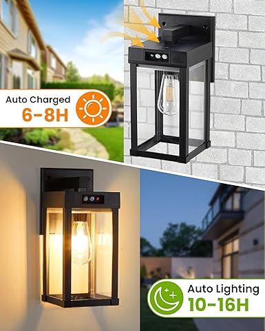 - 【High Brightness & 2 Bulbs】: Solar porch lights outdoor come with a 3200K warm bulb and a 6500K white bulb. The brighter and more energy – efficient E26 bulbs offer 1000 lumens of brightness and a 300° wider illumination span. With 4 clear panels for light transmission, our solar porch lights provide excellent brightness and greater illumination, all to ensure the safety of your amily and house