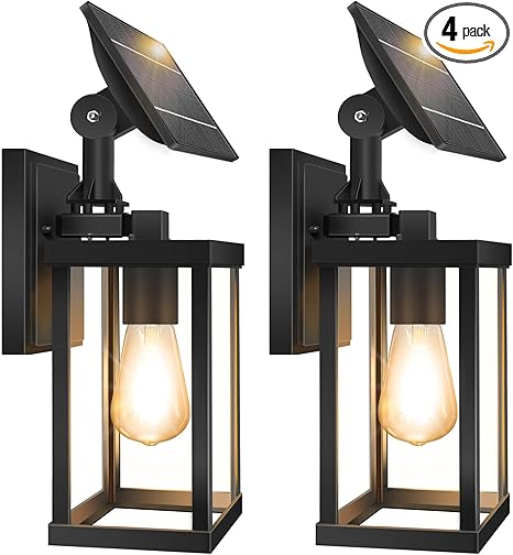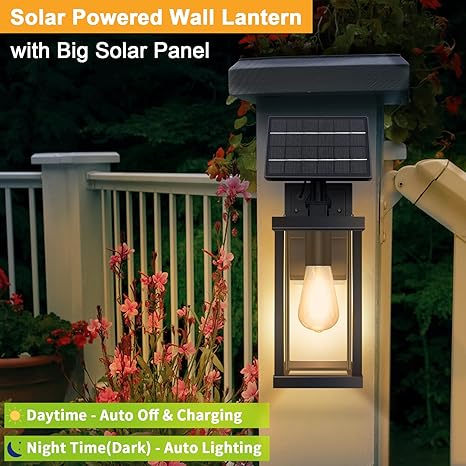 - 【Dusk to Dawn Solar Wall Light & Include Warm Bulb】This solar outdoor wall lights with a big solar panel, the solar porch lights outdoor will always lighting at night, dusk to dawn. (Includes one 3000K warm light E26 type bulb.)