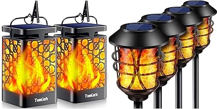 Illuminate your garden with TomCare Solar Flickering Flame Torch Lights. Enhance your outdoor space—shop now for a charming glow!