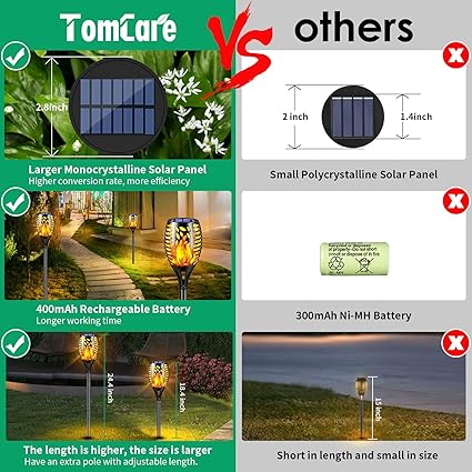Illuminate your outdoor space with TomCare Solar Flickering Flame Torches. Enhance your garden or patio today—shop now for captivating ambiance!