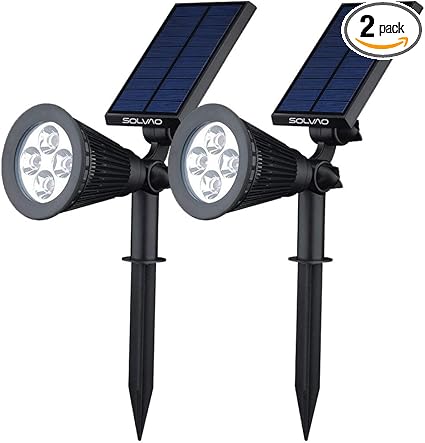 - Waterproof & Heatproof – this spotlight can withstand exposure to the elements and be left outside during rain, snow, or severe heat. 2-in-1 installation includes ground stake for uplight feature or wall mounting. Para aquellos que hablan espaƱol, estas focos luces solares ofrecen iluminación exterior ultra brillante para el exterior de la casa, el jardin y el paisaje.