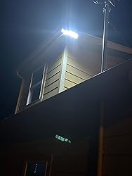 - 【3 Lighting Modes & Wide Applications】 The solar light offers three versatile lighting modes: ① Motion-activated 100% brightness at night; ② Always-on 10% brightness at night for 8 hours ; ③ Always-on 3% brightness at night with motion-activated 100% brightness. These modes satisfy various usage requirements, making it suitable for outside use in garage,yard, porch, and swimming pools, etc.