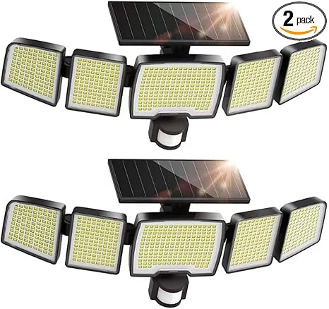 - 【620 Ultra-Bright LED & Wide Angle Illumination】With 620 ultra-bright LED, the solar flood light emits a powerful 4500 lumen warm white light (7000K color temperature). The three adjustable heads ensure flexible angle adjustments, ensuring a wide coverage of up to 270 degrees, effectively illuminating larger outdoor spaces.
