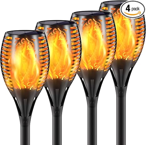 Illuminate your outdoor spaces with our 43″ Solar Torch Lights! Enjoy flickering flames and automatic operation. Order your 4-pack today for stunning decor!