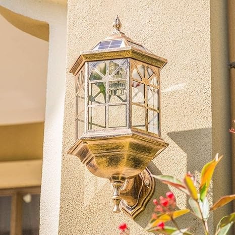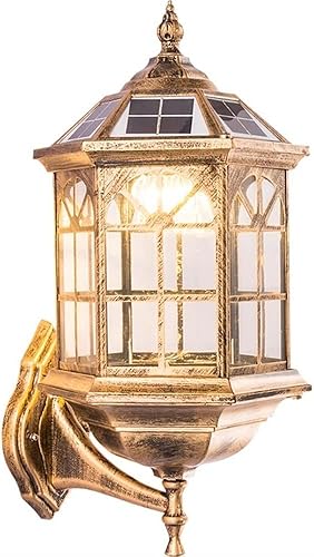 - Elegant Vintage Design: The gold finish and clear glass panels create a timeless vintage look, enhancing your porch, garden, or patio decor. The lantern-style exterior light fixture blends classic aesthetics with modern LED functionality.
