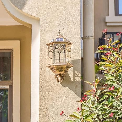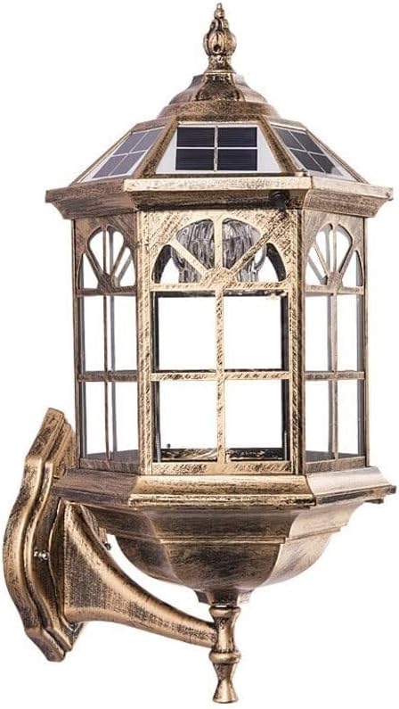 - [Retro External wall lighting fitting]: Retro geometry die cast aluminum solar wall wash light. Traditional Victorian die-cast aluminum exterior Wall Sconce Fixture, acrylic lampshade. A rustic bronze/black finish surrounds the body of the light and the item is wall mountable.