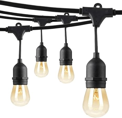 - Vintage-Style 24 Sockets Black Finish Plastic Material Solar Outdoor Lights String 1.65 In. D X 600 In. L X 50 In. W X 3.86 In. H Size, Clear Blub Multi-Directional | Cozy Glow Highly Durable