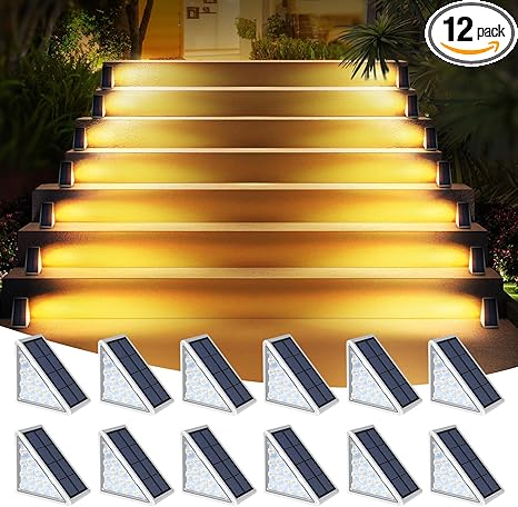 - Solar Powered 8H Lighting Time: The solar stair lights with 800mAh polycrystalling rechargeable battery, It can illuminate more than 8H after fully solar charged. With Built-In light sensor, the solar panel will automatically charge during the day, and the light will automatically turn on at dusk and off at dawn.It will hold up through an entire season without needing battery replacement.