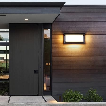 - External wall lighting fitting: Simple human body induction outside wall lamps. Square black aluminum exterior Wall Sconce Fixture with white high-transmitting acrylic lampshade. A rustic metal finish surrounds the body of the light and the item is wall mountable .