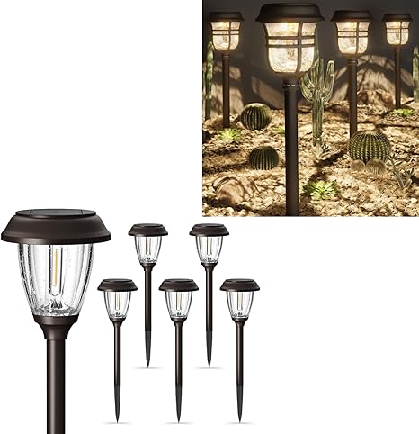 - Upgraded rust-resistant & anti-corrosion material quality: Serviceable Anti-Rust coated stainless steel material, bronze-finished stainless steel body design, long-lasting LED tungsten filament bulbs, bubble glass lens lampshade, robust ABS ground stakes.