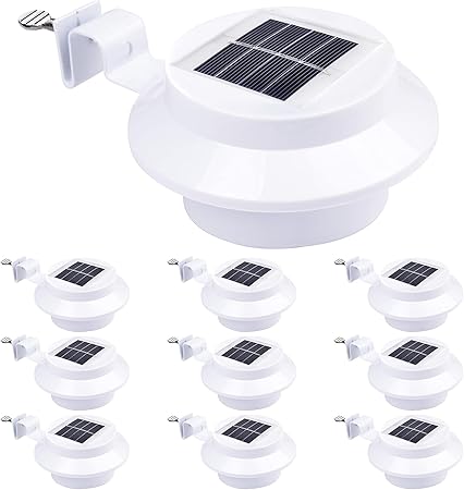 - [Energy Efficient & Eco-friendly]: 10 pcs LED Solar Gutter Light with 3 LEDs feature solar panel to charge under sunlight at daytime and power LED lights at night for outdoor illumination, which saves much on your electricity bill