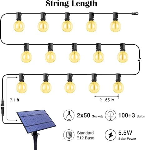 - Solar Power: These outdoor string lights are solar powered, so they can be charged during the day and provide light at night for up to 8 hours.