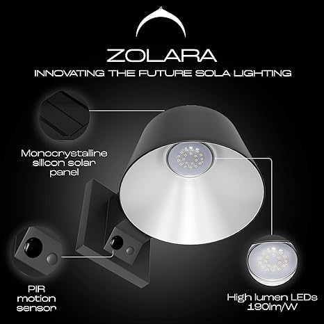 Zolara Solar Wall Light with PIR Motion Sensor 4 Modes IP65 Waterproof