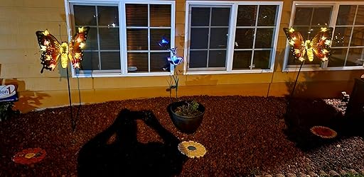 Bought two of these sturdy well built bright colorful butterflies for my front yard. They are a great addition to my front yard and really brighten up my yard at night. Love em!