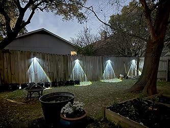 I really like these lights. They're not overly bright, but they provide the perfect accent lighting. The lens focuses the light into a cone shape, which looks great along my fence. Make sure to follow the instructions and let them charge outside for a day or two before turning them on. Mine typically turn on around 7 PM, and by the time I leave for work at 6 AM, they're dimly lit but functional. The internal battery doesn't seem easy to replace, so it's important to give them a full charge before using them. These lights also allow you to switch between a cooler, 7000k color and a warmer, 3000k color, which is a nice feature. The picture I’ve included shows the cooler 7000k setting. Overall, I’m planning to buy more to complete the rest of my fence. I only rated them 4 stars because one of mine was missing a mounting screw.